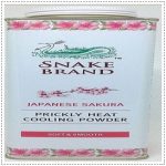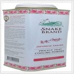 Snake Brand Sakura Cherry Blossom talc 280g is a remedy for Prickly Heat (known as Milaria Rubra) which is a very itchy red skin heat rash. Maybe caused by sunburn and excess heat in a hot tropical climate.