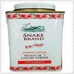 Snake Brand Sakura Cherry Blossom talc 140g is a remedy for Prickly Heat (known as Milaria Rubra) which is a very itchy red skin heat rash. Maybe caused by eczema and sunburn and excess heat in a hot tropical climate.